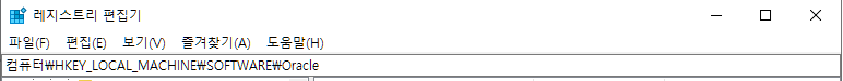 레지스트리 편집기 창에서 \HKEY_LOCAL_MACHINE\SOFTWARE\Oracel 파일에 들어간다.