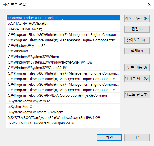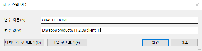 변수 이름(N) : ORACLE_HOME
