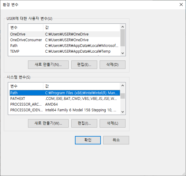 시스템 변수(S) 부분에서 PATH 변수를 선택하여 편집(I)... 버튼을 선택한다.
